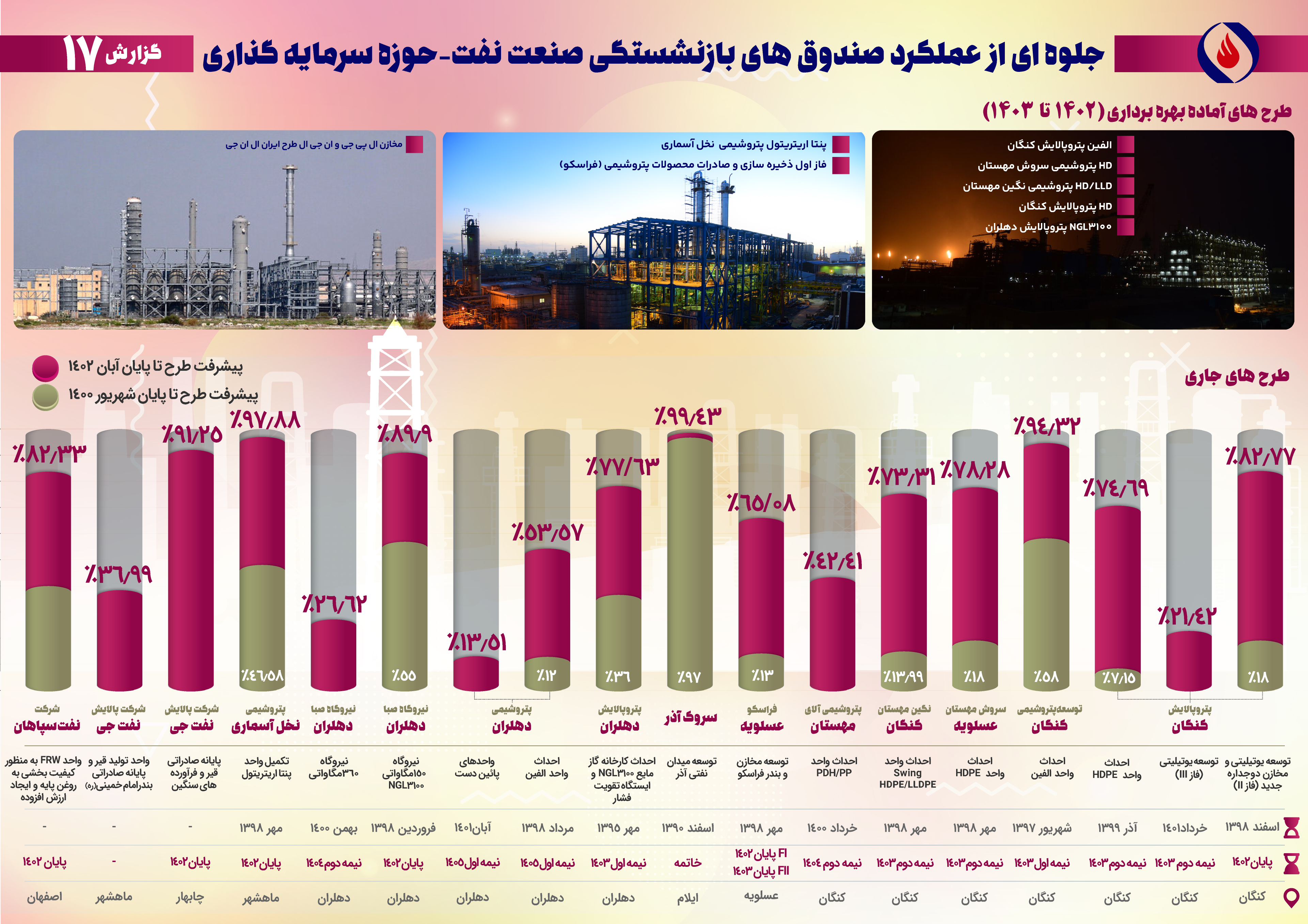 هفدهمین گزارش پیشرفت ماهانه طرحهای گروه اقتصادی صندوقها
