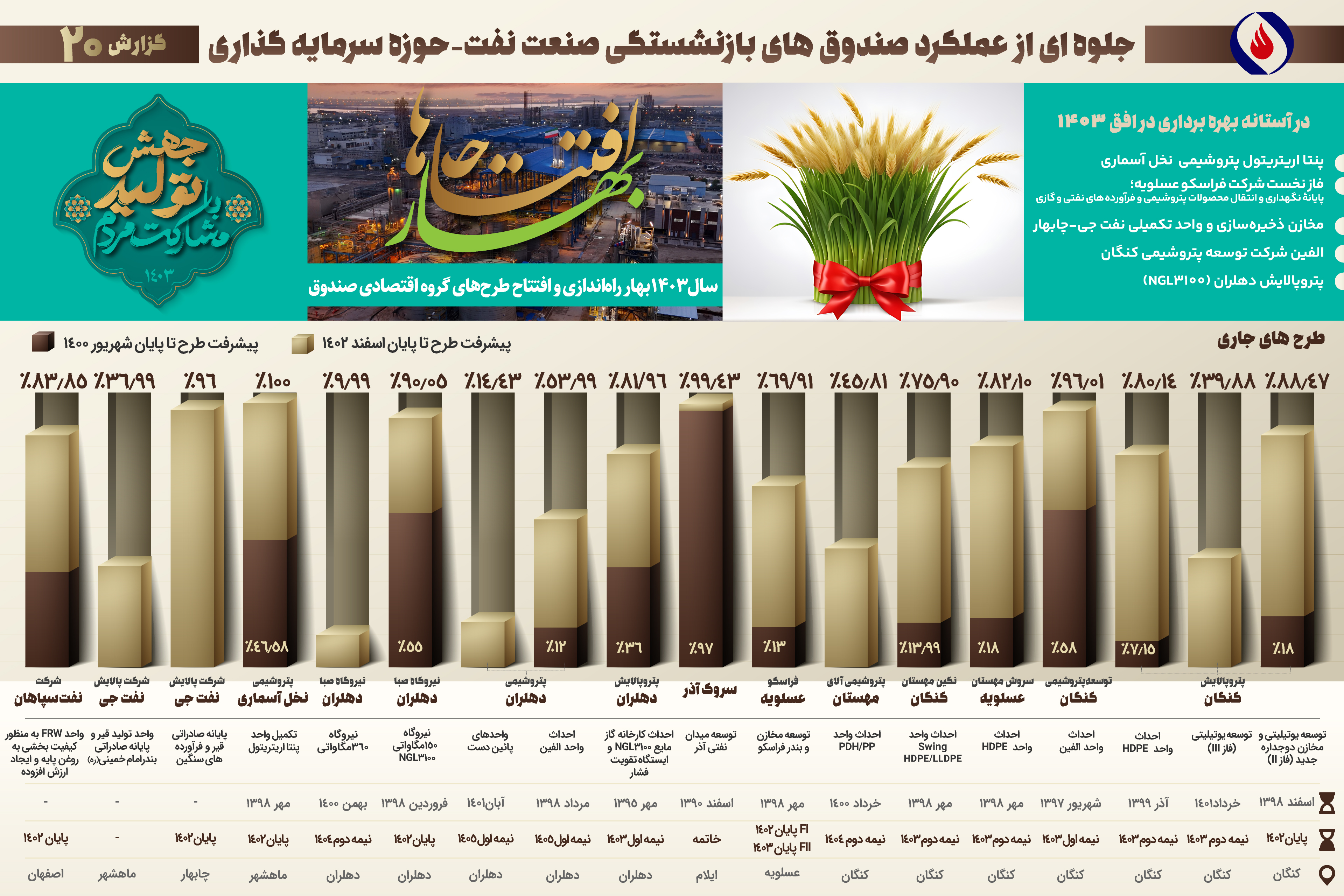 بیستمین گزارش پیشرفت ماهانه طرح‌های گروه اقتصادی صندوق‌ها